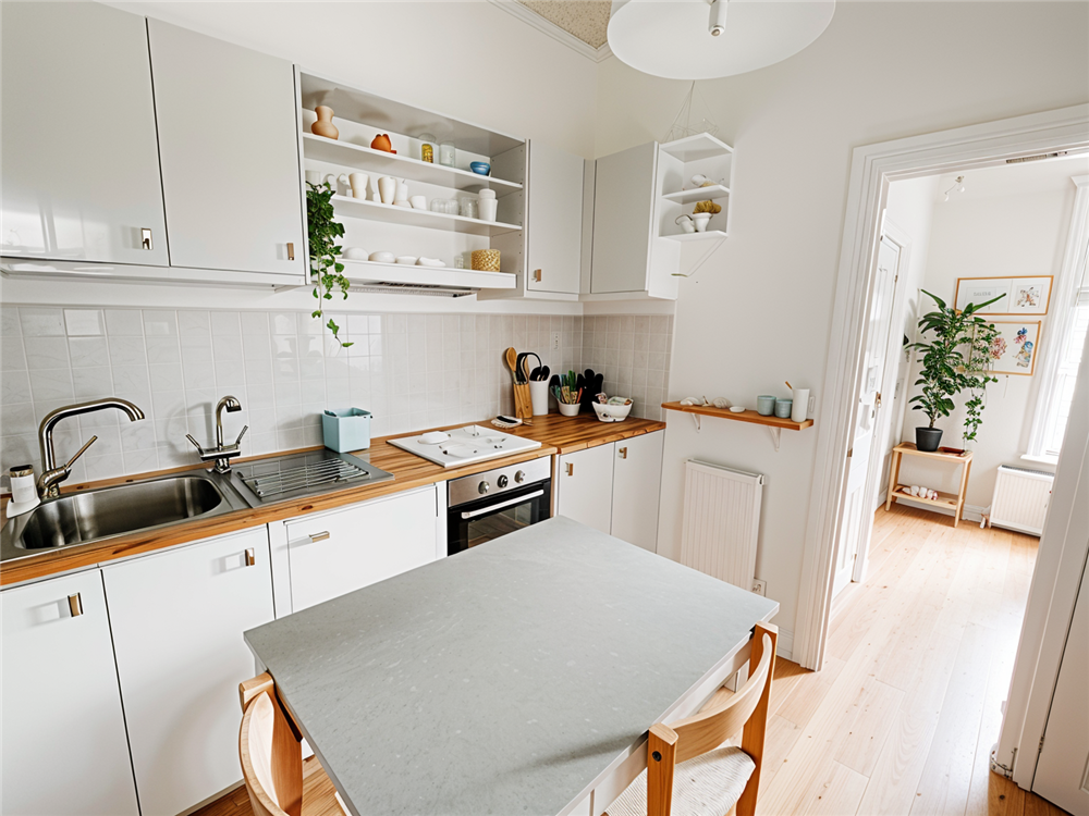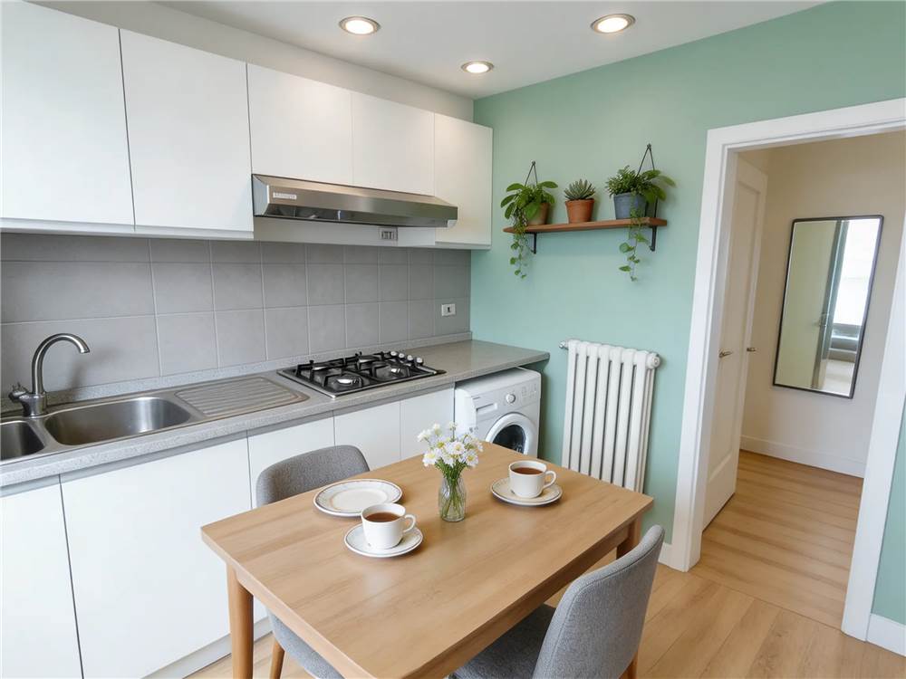 L'appartamento è così composto: ingresso ampio e sfruttabile, cucina abitabile con balcone, ripostiglio, soggiorno.