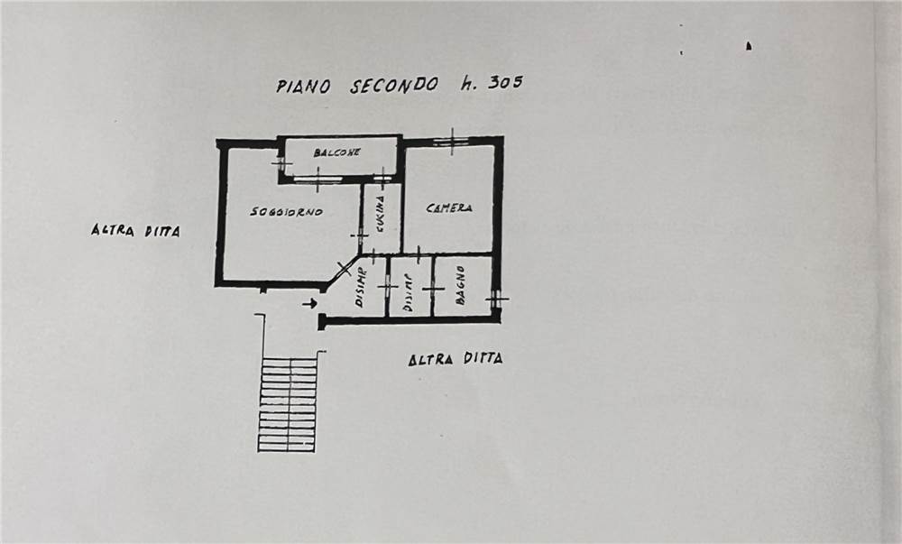 Ampio ingresso, soggiorno con uscita sul terrazzino, ripostiglio, cucina abitabile, disimpegno, camera matrimoniale, bagno.