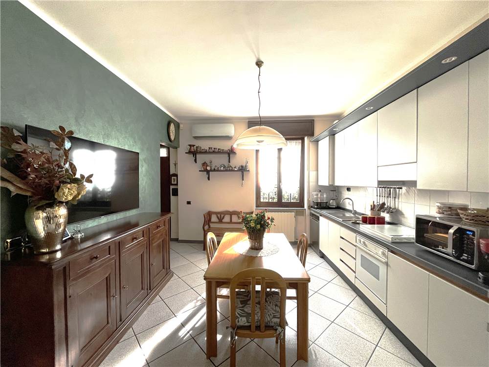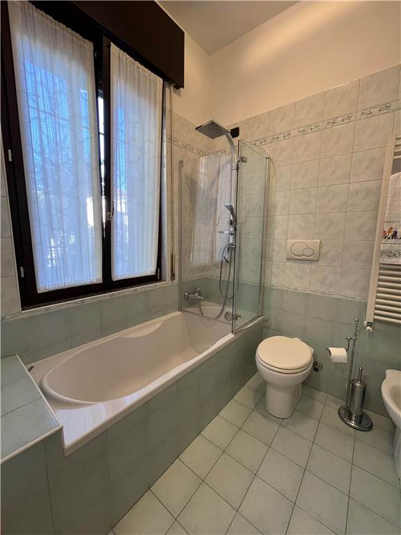 Dal piano basso si sviluppa anche il secondo appartamento, un 4 locali così suddiviso: ingresso al piano rialzato, ampia cucina abitabile, locale lavanderia. Al piano 1 si trovano il soggiorno di ottime dimensioni, tre camere da letto, il secondo bagno finestrato con vasca e il balcone.