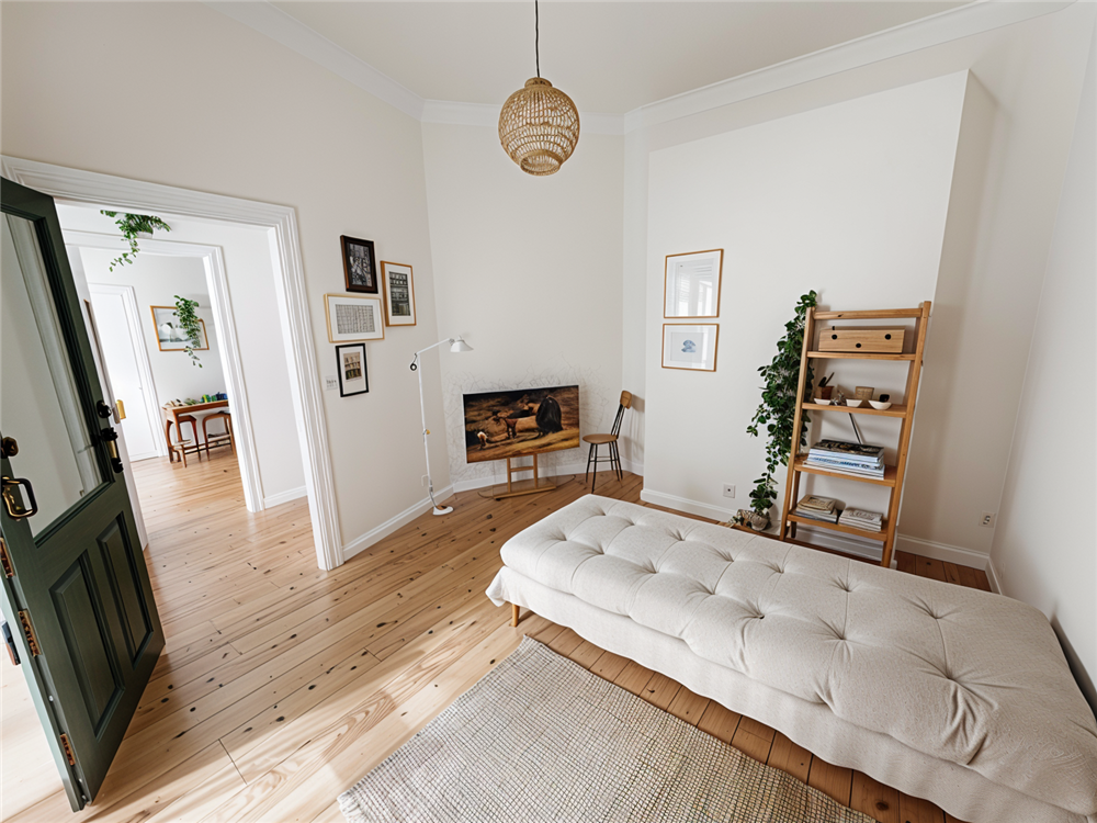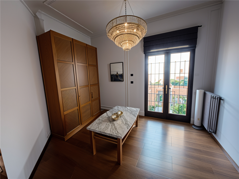 Ingresso al piano rialzato, soggiorno, cucina abitabile, corridoio per separare la zona notte, 3 ampie camere da letto, due bagni entrambi finestrati rispettivamente con vasca e doccia, due balconi.